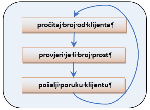Slika: Petlja koja se izvodi na strani klijenta nakon uspostave komunikacije s poslužiteljem
