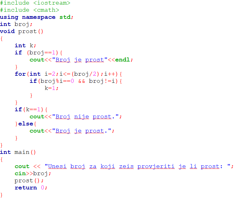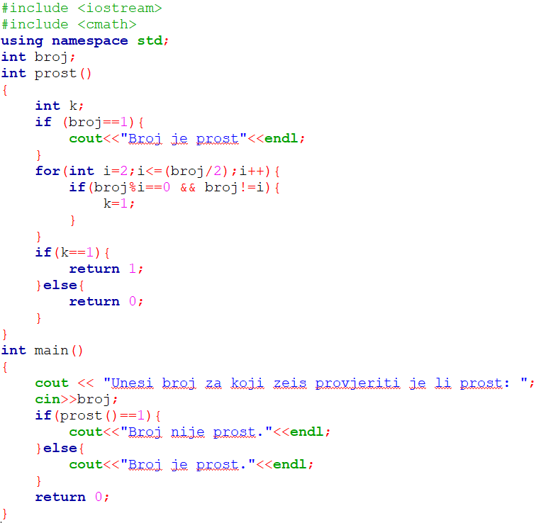 Sve tipove prikazati ćemo na jednostavnom zadatku provjere je li broj prost.