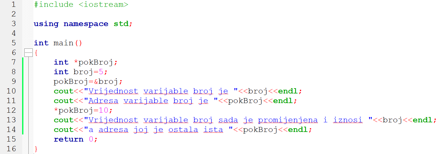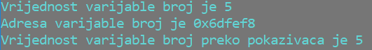 2. primjer: Deklaracija, inicijalizacija i uporaba pokazivača