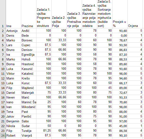 Primjeri ocjenskih vježbi od prošle godine